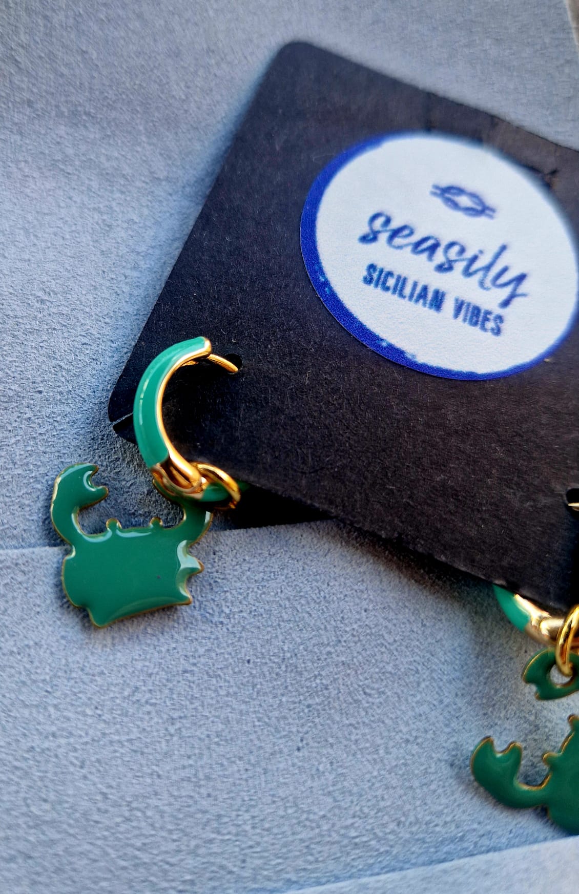 Sorprendi con questi graziosi orecchini a cerchietto con ciondolini a forma di granchietto smaltati in verde. Aggiungi un tocco di colore al tuo look con questi orecchini unici e alla moda. Facili da indossare e perfetti per ogni occasione.